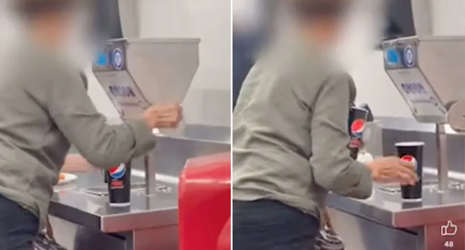 在昆州Costco North Lakes,一名老妇人被拍到用2个饮料杯装满免费提供给顾客的碎洋葱。