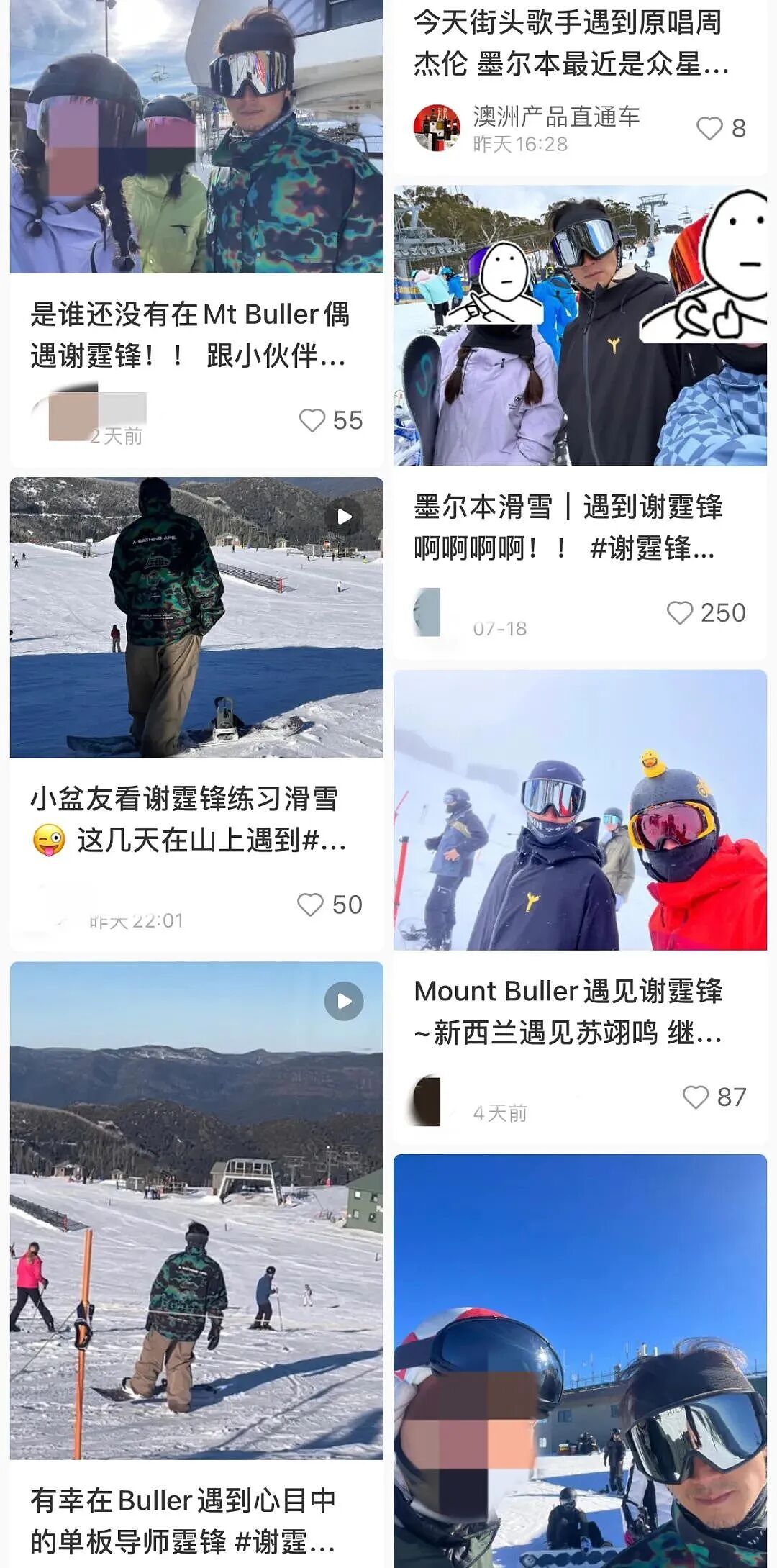先是谢霆锋在Mt buller雪山带大儿子Lucas滑雪一周,被无数在雪山滑雪的小伙伴看到并合影: