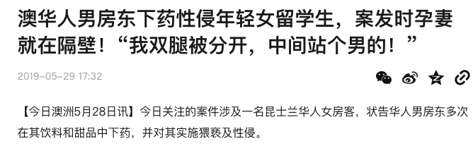 据报道,一名昆士兰华人女房客,状告华人男房东多次在其饮料和甜品中下药,并对其实施猥亵及性侵。