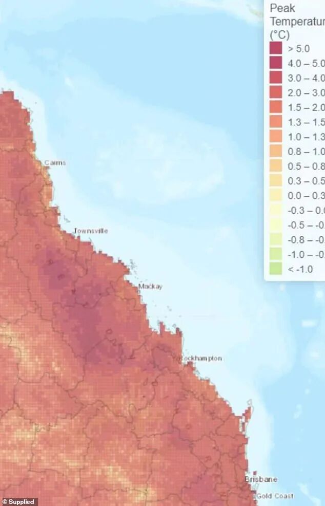 在昆州中部的Rockhampton,热浪的持续时间将增加多达50天;在热带海岸的Cairns,热浪的持续时间将增加长达一个月。