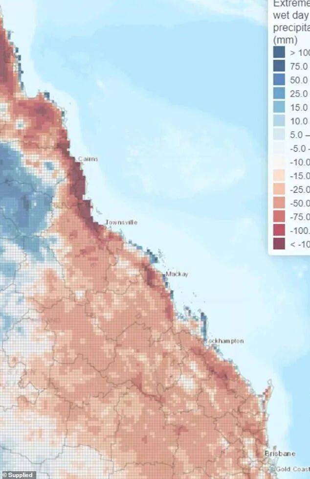 Cairns的热带湿度也将受到影响,该市最严重的雨天降雨量将减少590毫米,对于其热带雨林来说是个令人担忧的消息。