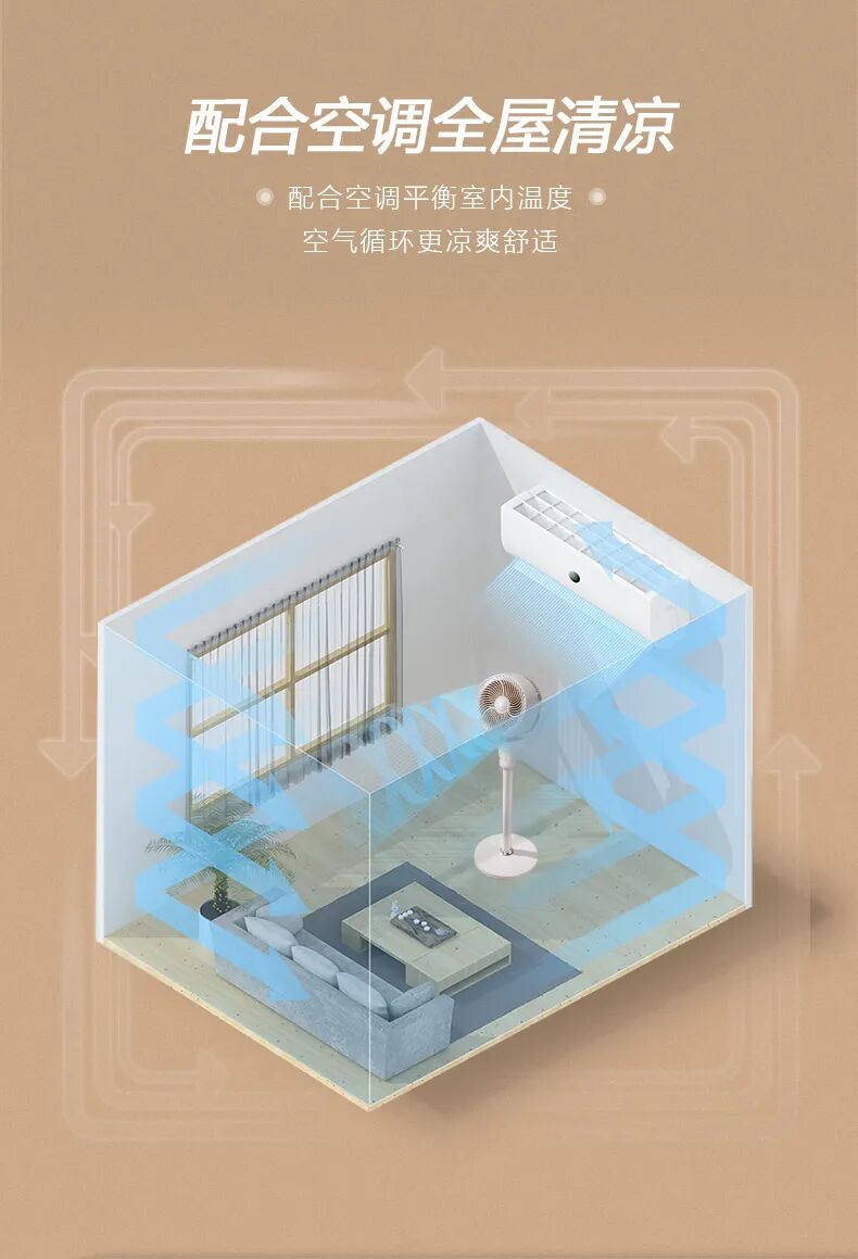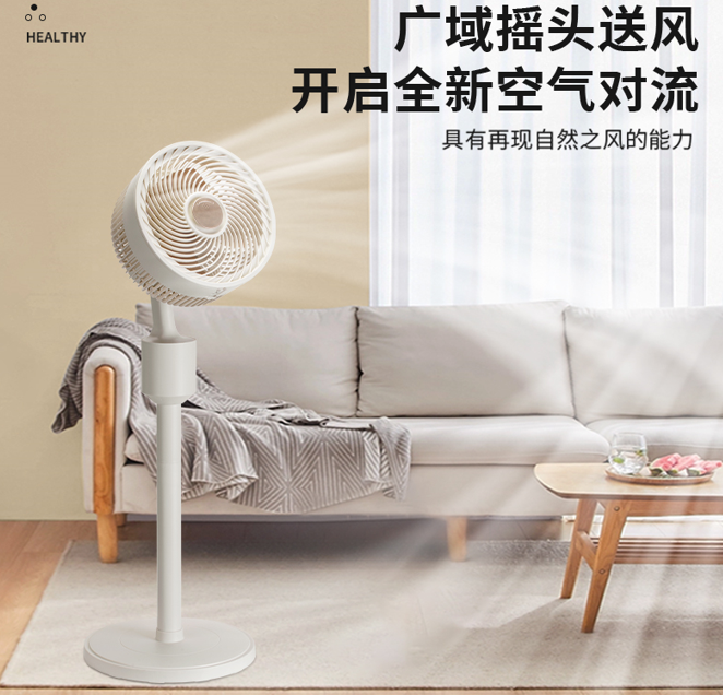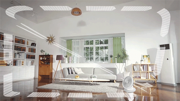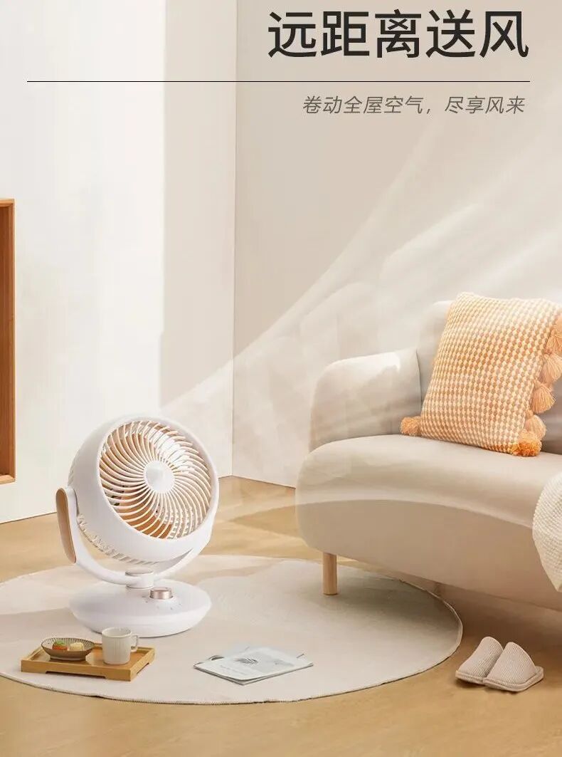 在面积比较大的客厅,即使离了好几米远,循环扇偏着方向吹,远处的也能感受到风的痕迹。