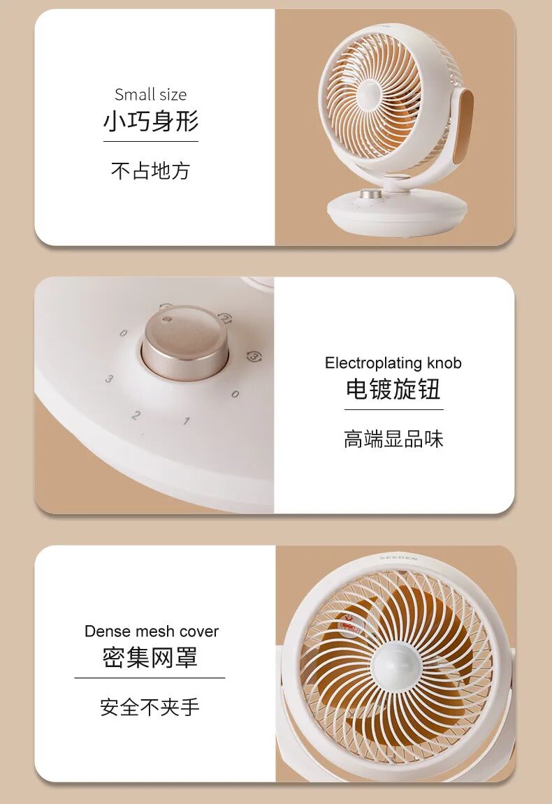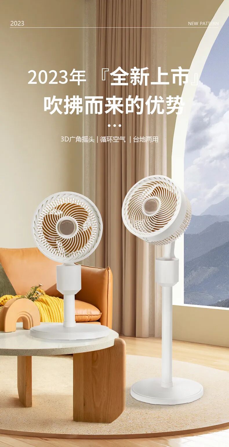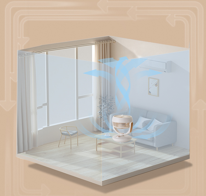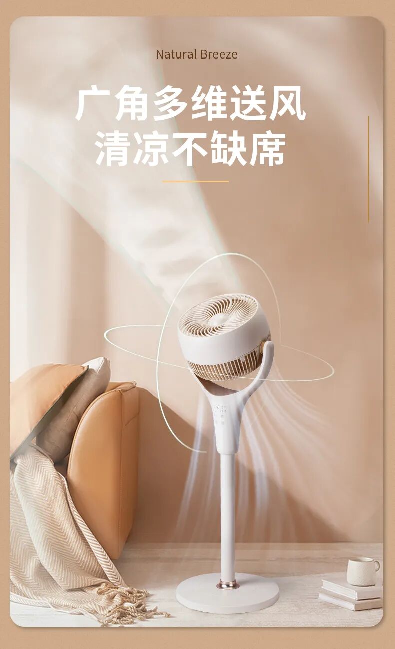 循环扇通过涡轮设计、倒流格栅、有一定长度的圆筒设计,能让风呈螺旋状吹出来。