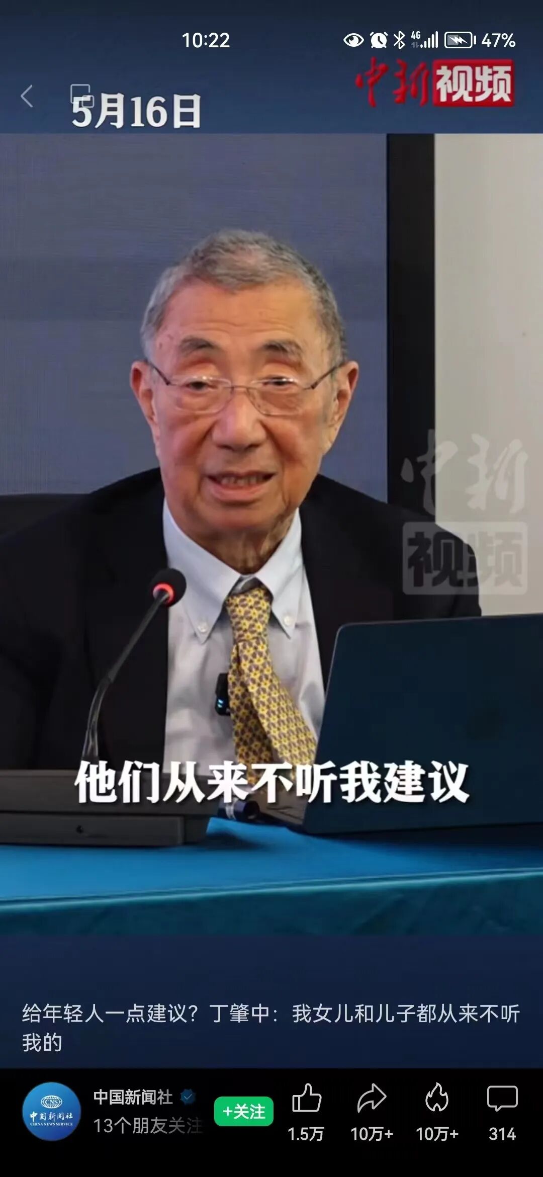 今天我听到一句话,丁肇中说他孩子从来不听他的建议。
