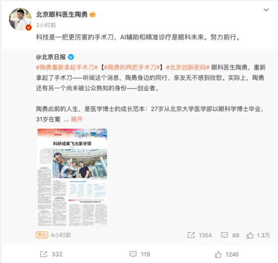 如今,他研究了十年的“眼内液精准检测技术”,有了飞速的发展。