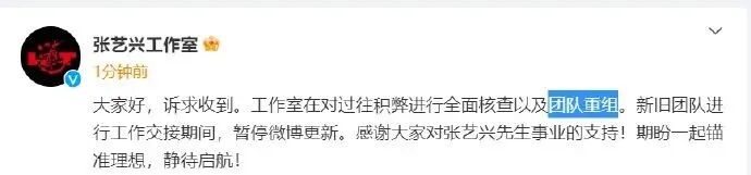 张艺兴粉丝最近列出数个工作室“罪状”,来质问团队的工作能力以及抵制原团队工作人员,目前得到的回复是团队会进行重组,新旧团队交接期间微博暂停更新。锤爷挑了几个粉丝列举出来的问题:1. 歌曲母带丢失,新歌没有mv 2. 艺人护照丢失 3. 因为签证没办下来,导致海外音乐节以及演唱会都没去 4. 对接资源工作人员撇清关系 5. 华伦天奴询问官方图宣发,工作人员没回应最后找到站姐 6. 品牌对接后推荐泰洋川禾旗下艺人……还有其他问题就不一一cue了。