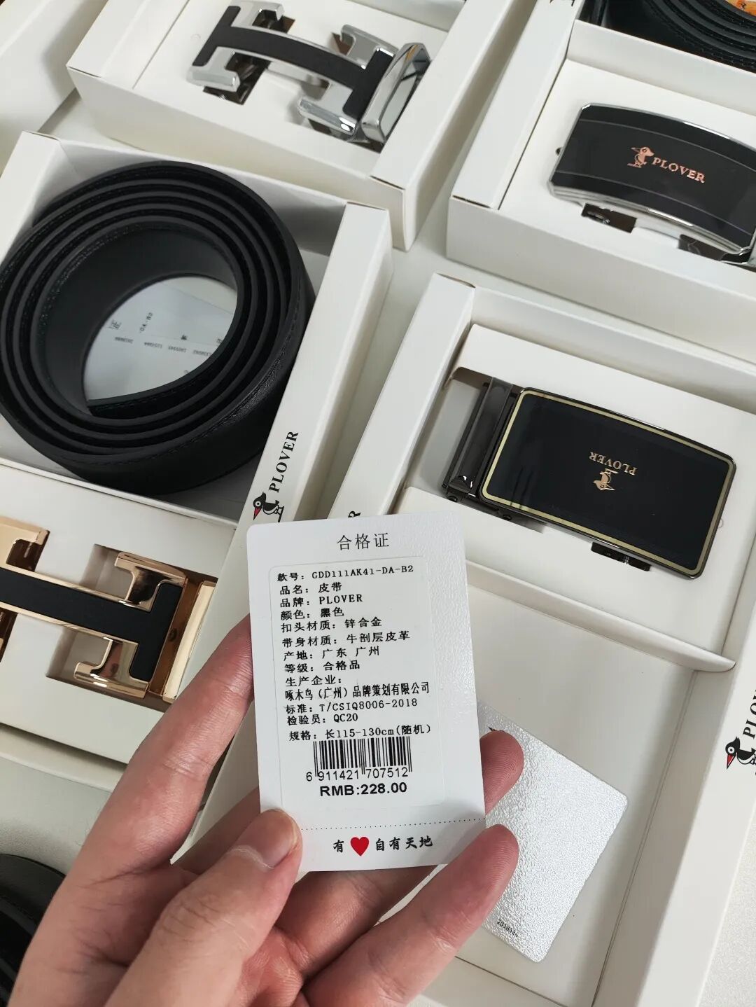 品质是从每一个细节之中体现出来的,这款皮带采用简洁大方的设计,没有任何多余的点缀。其中三款的扣头上刻有PLOVER的品牌LOGO,经典时尚,更加百搭上档次。还有两款大H,特色工艺,合金不易掉色,简单易用,更加方便脱戴更省事。男人的皮带材质一般是各种皮质:牛皮、羊皮、猪皮、鳄鱼皮、人造皮。人造皮样式多却不耐磨,其他的又分头层皮、二层皮,各有优缺点。底层用材料定型,表层用超纤皮做出时尚荔枝纹,再对折缝合,做出这条耐折、耐磨、时尚有型的皮带带身。韧性好、手感佳,看着特别有质感,坚挺有型,线条优美,佩戴更有质感!许多男士都使用过扣眼皮带,这种皮带使用一段时间后,扣眼部分比较容易开裂;无论涂油保养还是使用小心,都可能会迎来断裂的命运。使用的高硬度锌合金更加的耐磨,不易损坏并且抗氧化,即使长时间使用也不会轻易变色。每一处细节都彰显出品质,经验丰富工匠悉心剪裁,边缘齐整美观,质感更高。![]()