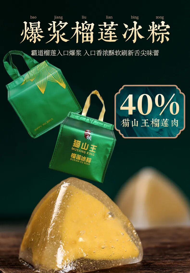 传统的粽子吃腻了,来试试食一倾【猫山王榴莲冰粽】,冰激凌的口感,体验与“粽”不同。
