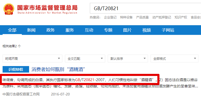 例如标有GB/T20821的白酒,虽也符合国家标准,但还是酒精勾调的固液态白酒。