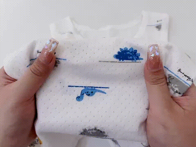 高密高支做出来的面料纤维特别紧实可靠,不容易变形松垮。大领囗的设计,娃穿起来不勒肉不紧绷,更加自在,玩耍时的大动作也能无拘无束,宝贝穿脱也很方便。
