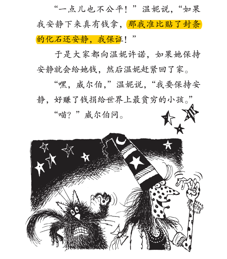孩子在阅读中,还可以跟着温妮女巫学修辞,一起修炼成“语言天才”,她总是语出惊人,简直是行走的“金句制造机”,不信你看: