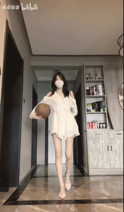 小孙女不知从哪里跑出来,手里举着一个玩偶,小黄鸡的身体,灰色的中分头、背带裤,黑色高领衫上挎着一颗小篮球。