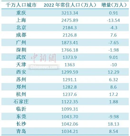 【千万人口城市变局:长沙增量第一,石家庄“逆转”】随着各地公布2022年人口数据,17个千万人口城市的常住人口情况也出炉了。在千万人口城市中,重庆常住人口继续稳居第一。长沙常住人口增量最多,排位提升。杭州、西安人口增量靠前。石家庄人口增长由负转正。(中国新闻网)【迪士尼落子武汉?上海迪士尼度假区回复:这是假新闻!】近日,有网友询问武汉市相关部门,能否引进迪士尼乐园,网传截图显示,武汉市蔡甸区回复称,市商务局刚刚与迪士尼展开初步洽谈,努力推进达成项目落户意向,后续会积极关注项目接洽进展。就迪士尼落子武汉相关事宜,上海迪士尼度假区公共事务与传讯副总裁Murray King (王凯) 对记者回复:这是假新闻!(上证报)
