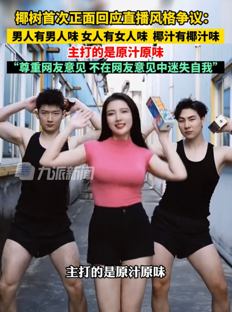 【椰树首次正面回应直播风格争议】6月2日,海南海口。椰树首次正面回应直播风格争议:“男人有男人味,女人有女人味,椰汁有椰汁味,主打的是原汁原味。”椰树直播间运营方相关负责人称,尊重每一种审美,尊重网友的不同意见,但不会在网友的意见中失去自己(九派新闻)![]()