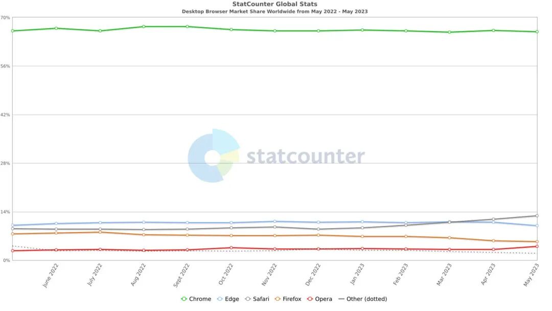 时间来到 6 月,研究机构 Statcounter 也如期公布了最新的浏览器市场份额的变化情况,