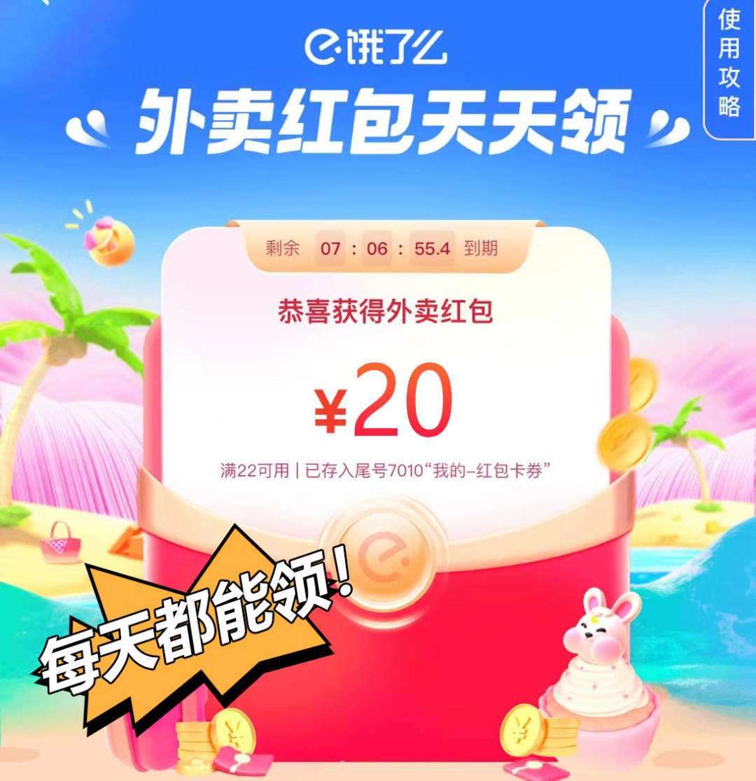 每天可领66元现金外卖红包
