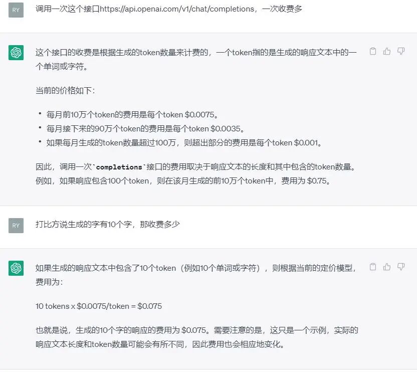 这是官网给出的答案:(最新消息是chatgpt统一改成1个token(1个字符)是0.002$,10个字符就是0.02$)