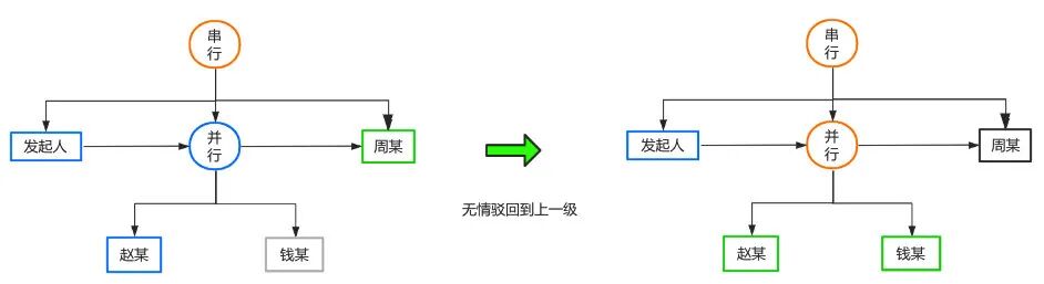 我查了一下午啥是并行节点,发现并行节点是一个包含很多审批人的大节点,这个大节点里任何一个人审批通过,则该节点就完成。