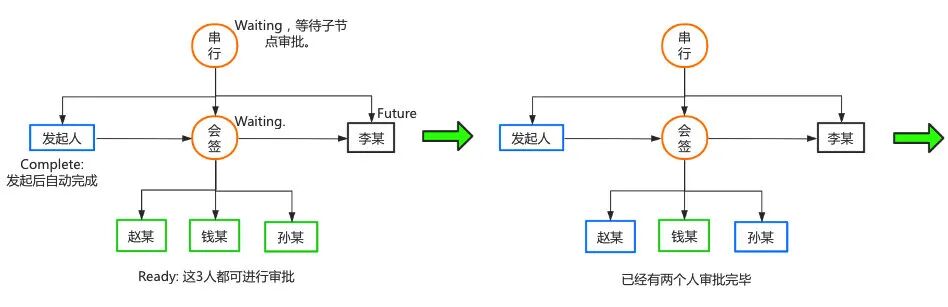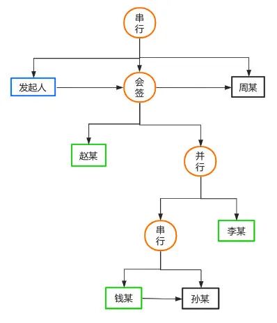 我又查了一天啥是会签节点,发现会签节点就是一个大节点,里面有很多审批人,当这个大节点里的所有人都审批通过后,才能进入下一个节点。