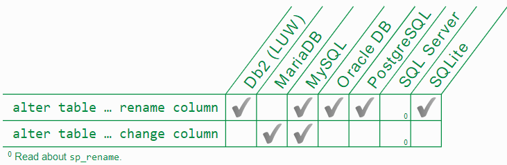 SQLite引入的另一个特有功能是重命名基准数据库表中的列1。标准的SQL不支持此类功能2。