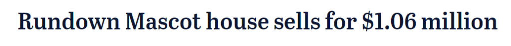 《悉尼晨锋报》6月5日报道称,在周六的拍卖会上,悉尼Mascot一栋上世纪60年代的砖房以106万澳元的价格成交,11名买家参与争夺。