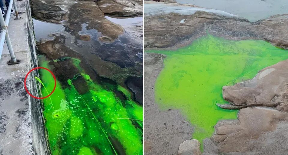 周五,Sutherland Shire的居民在发布了Cronulla海滩的岩石池照片时问道:“这是什么?”他们想知道这种荧光绿色的液体是否应引起警惕。