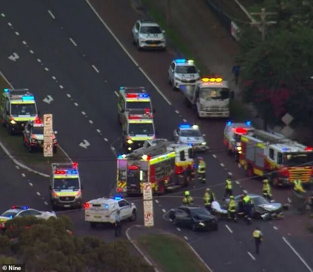 事故发生后,紧急救援人员封锁了Marsfield区Epping Rd(图片来源:《每日邮报》)