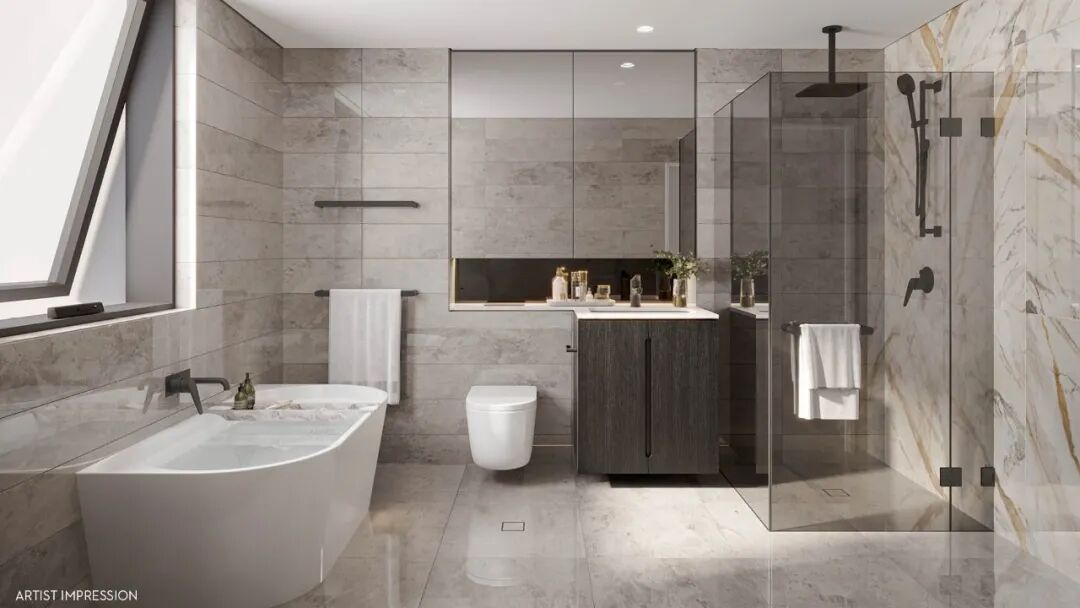 所有联排别墅的私家临街入口都带有带有精美前院草坪,还能享受后院和私家露台,户外生活空间面积最高可以达到121平米。内装方面,Rivera配备大容量收纳空间、五年保修的高级厨电套装、浴室地暖、无需钥匙的智能电子锁、安保系统、用料采用塔斯马尼亚精装橡木材质的户型入门、太阳能板和天窗等人性设计和品质用料。入户大门高度达到2.7米,车库配备电动车充电桩接口和自行车架。