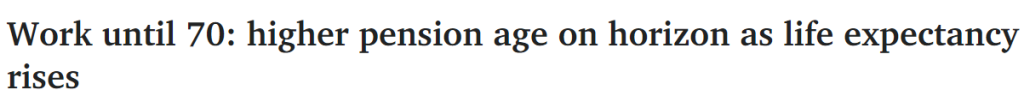 他说,到本世纪30年代中期将退休年龄提高到70岁,将“超过人类预期寿命的增长”。