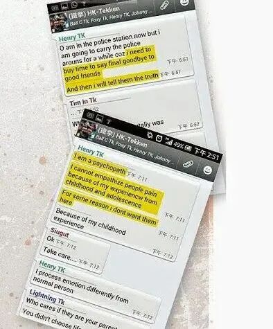 案发前几天,心中郁闷的他找好友谢臻麒聊天,谈话间,周凯亮说起想要自杀的决定,不愿意苟活于世了。