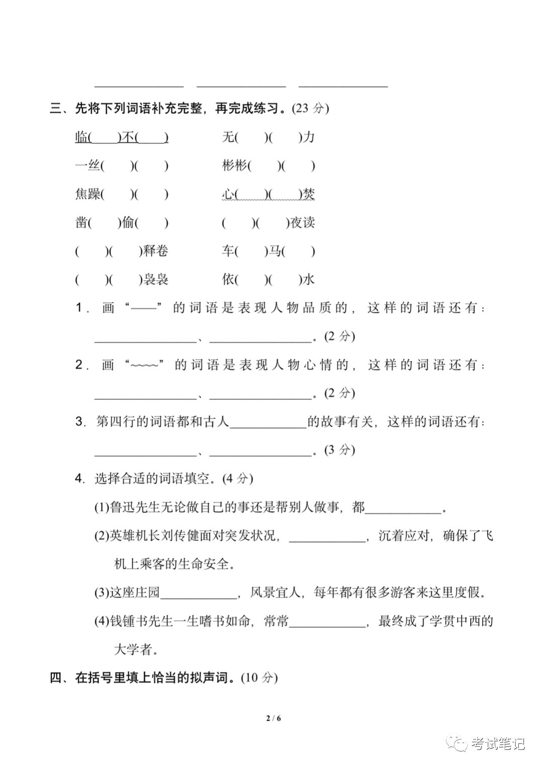 四年级语文期末复习:词语积累提分卷,补充学习!