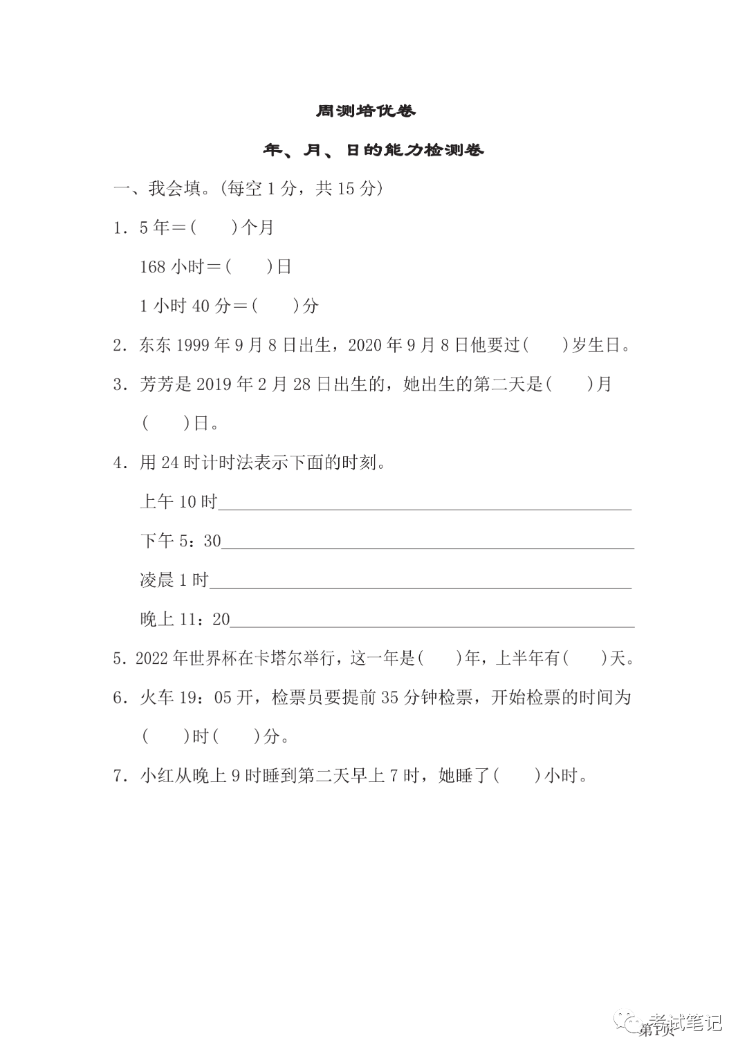三年级数学下册:周测培优卷2套,年月日的检测、小数的认识!