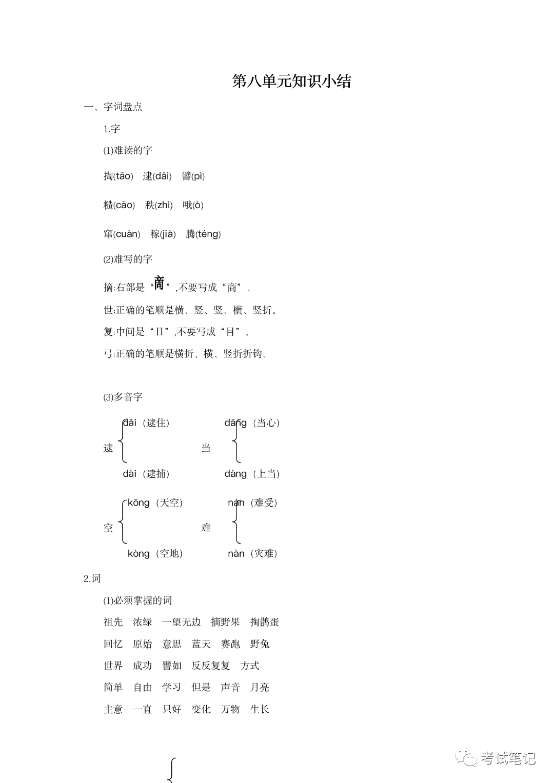 三年级语文:下册1-8单元知识汇总,学期末总结!