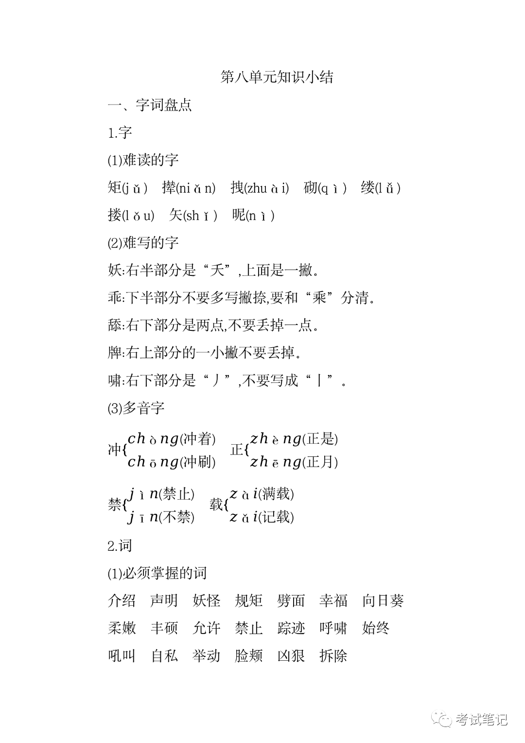 四年级语文:下册1-8单元知识汇总,学期末总结!