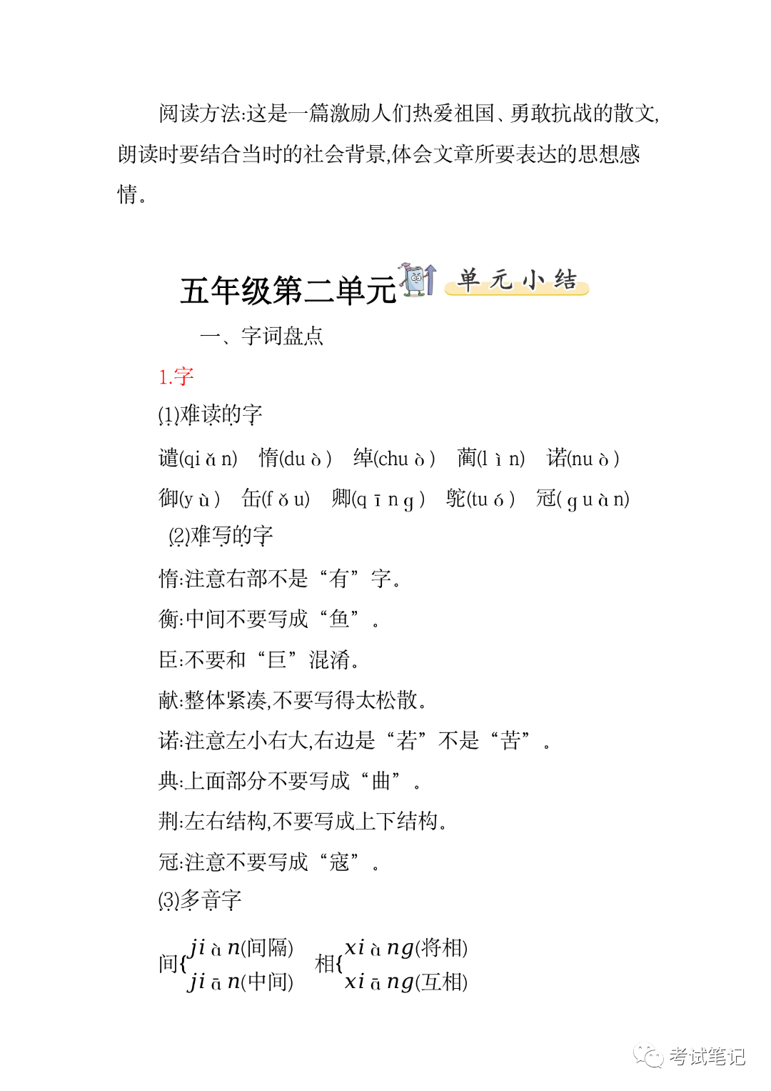 五年级语文:下册1-8单元知识汇总,学期末总结!