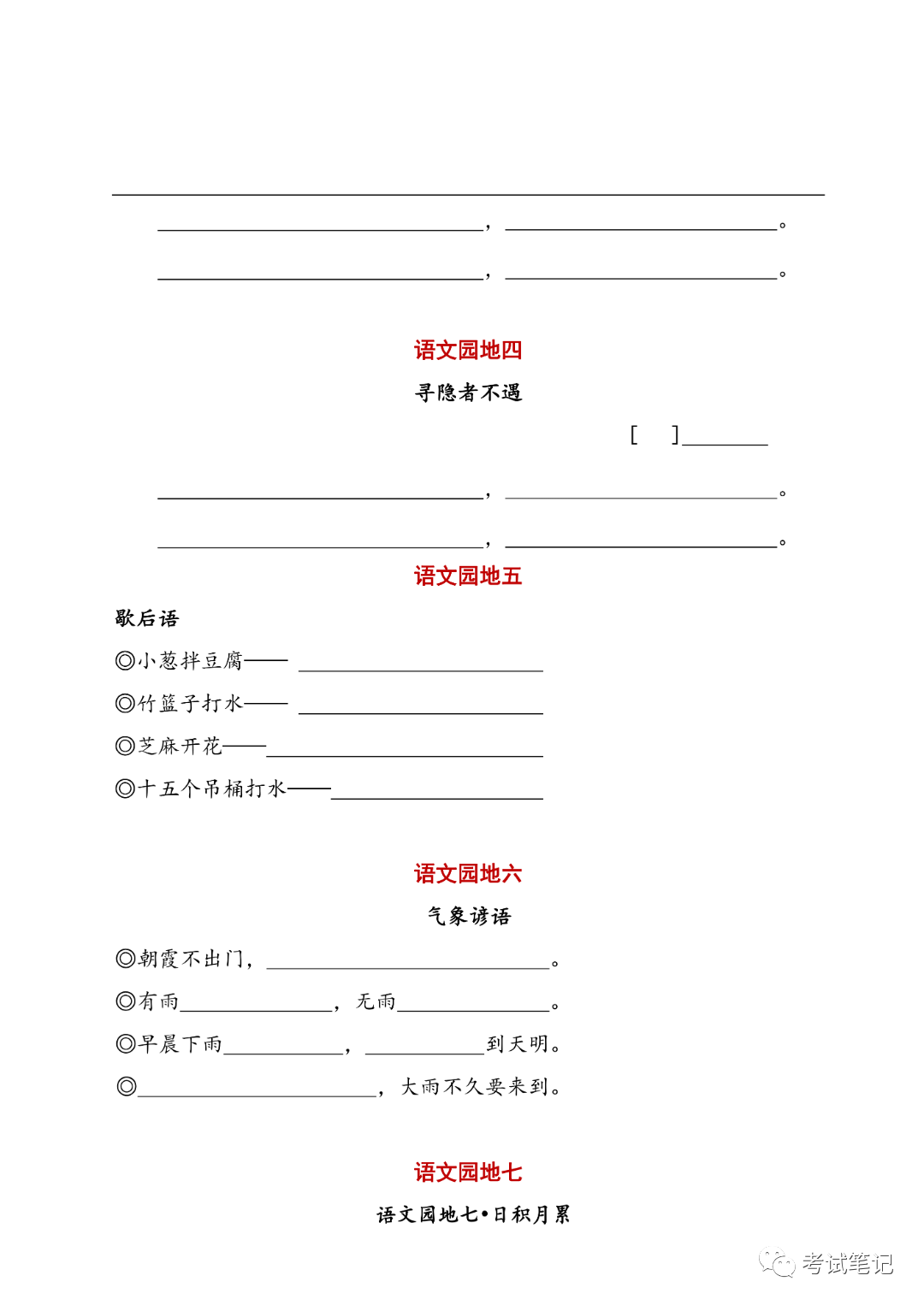 一年级语文下册:字词与积累汇总,看拼音+古诗课文积累!