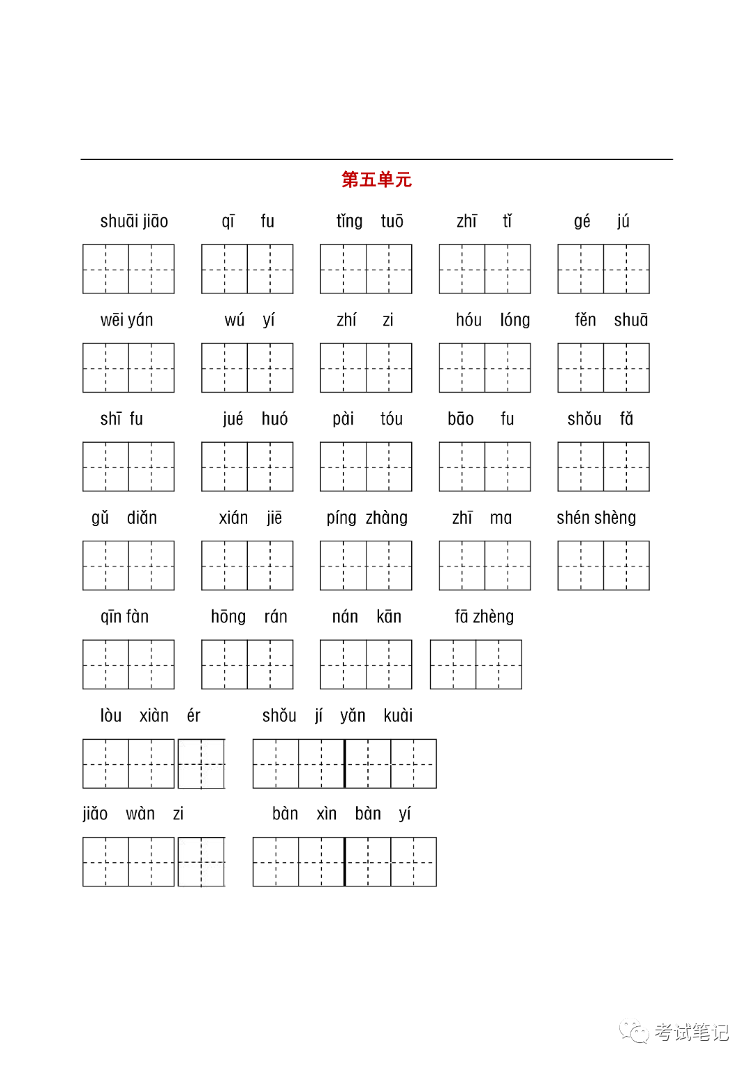 五年级语文下册:字词与积累汇总,看拼音+古诗课文积累!