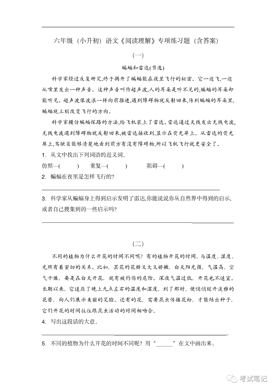 六年级语文:阅读专项训练2套,期末练习用!