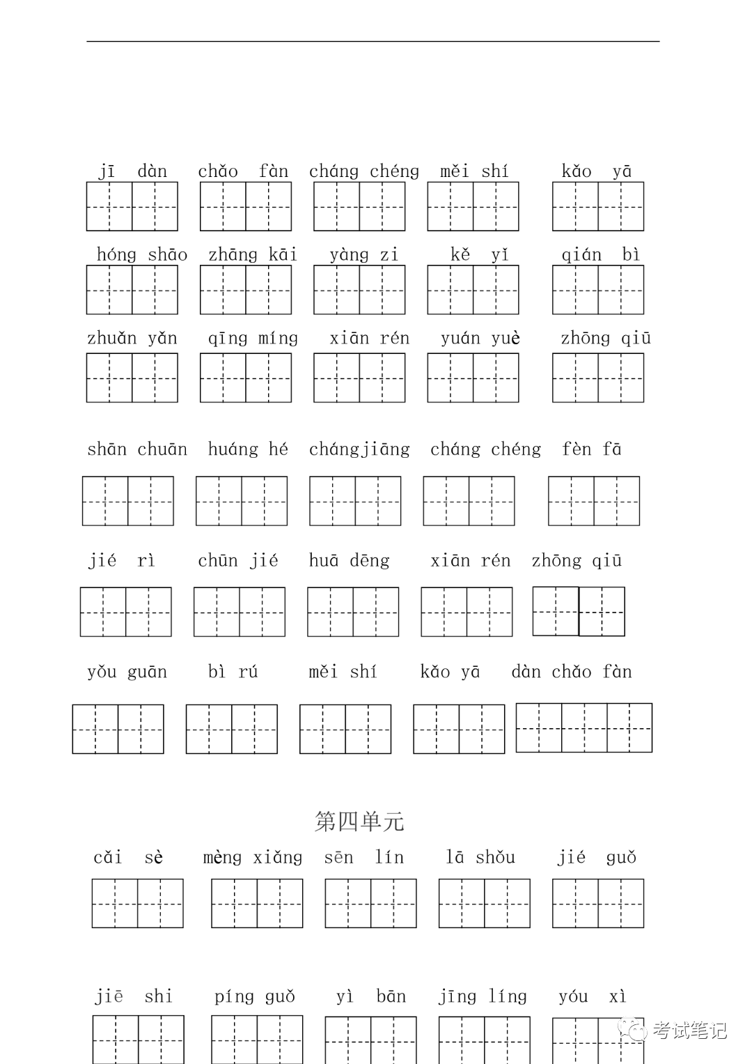 二年级语文下册:看拼音写词语专项训练(田字格),附答案!