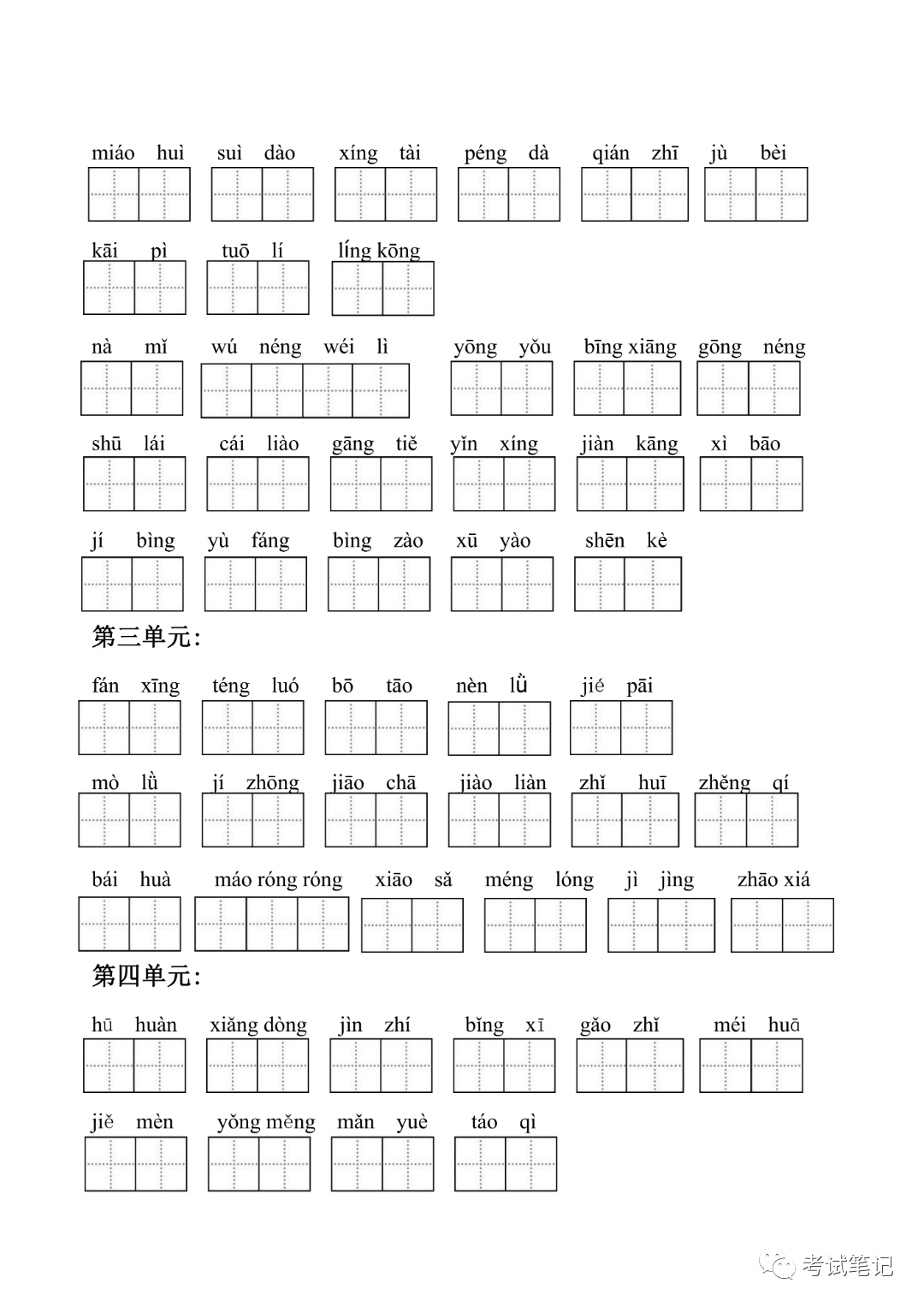 四年级语文下册:看拼音写词语专项训练(田字格),附答案!