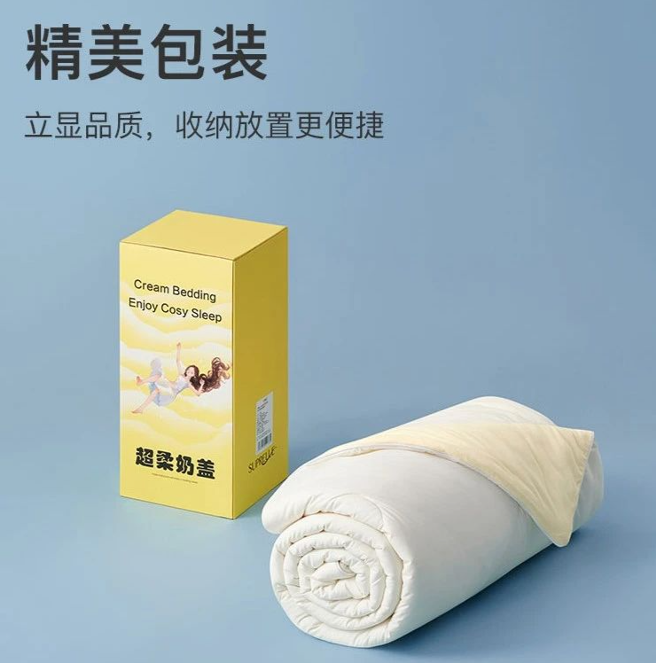 对于品质的高要求和成熟的纺织工艺是便宜被子不能比的。(被子是在中国加工,加工厂是德国Suprelle考察检验合格的中国工厂)。现在,这床被子已经掌控着我的睡眠质量,盖上它一下子就沉入梦乡。前面已经说了,这床一被两用的「超柔奶盖加冰夏凉被」还有一个普通版叫「超柔奶盖夏凉被」。是专门照顾到习惯开空调入睡,喜欢低室温的人,防止半夜温度过低、着凉。特别是给老人家购买,选「超柔奶盖夏凉被」就够了,更便宜也更实用!这床被子也不例外,品牌天猫店的售价369元起,但今天从我这里下单:任意翻面都可以很好地贴合身体的曲线,家里有爱蹬被子的小朋友,一定要备上一条。不瞒你说,我当初就是被这个包装吸引,甚至可以作为礼物送人👇