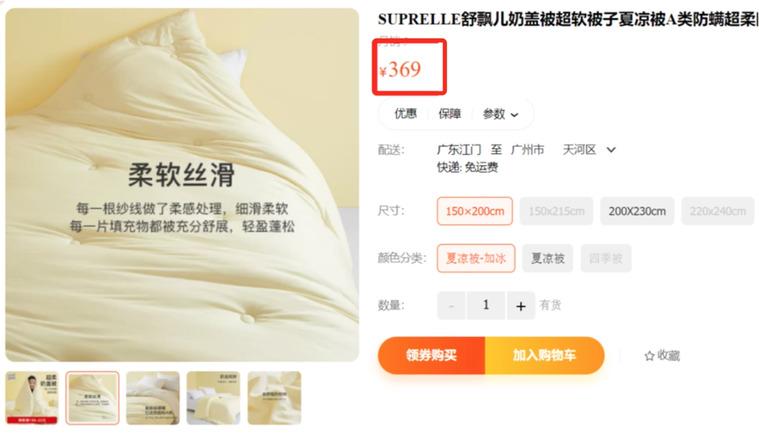 200出头就能获得堪比「4000多元真丝床品的睡眠体验」+「五星级酒店的高科技感」。另外,为了照顾怕冷、需要保护关节的老人、小孩和女性。Suprelle还有一款「超柔奶盖夏凉被」,没有凉感,但双面都是高科技柔感面。官方售价299元起,今天直降100元,只要199元起!有需要的可以一起入手,给全家人配上不同的被子,让夏天的睡眠彻底成为享受!