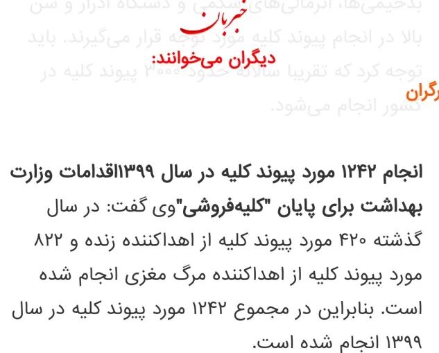 早在1997年,伊朗就通过了法律,将器官捐献和交易合法化。这里可以合法的交易肾脏、肝脏、骨髓、角膜、牙齿、干细胞、皮肤等等。