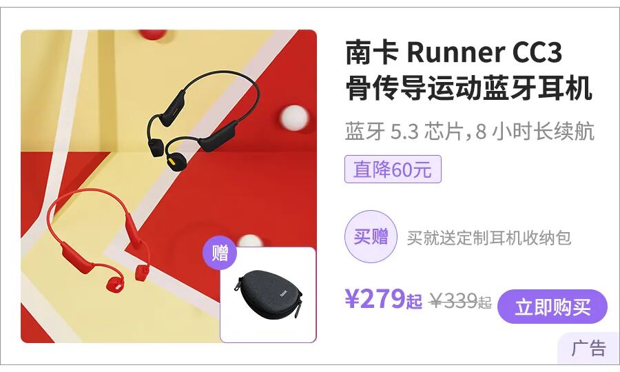 骨传导耳机一般都大几百或者上千元,但考虑到很多人是第一次接触骨传导耳机,我们强烈建议你试试入门级的南卡 Runner CC3,绝对是这个价位里性价比超高的。