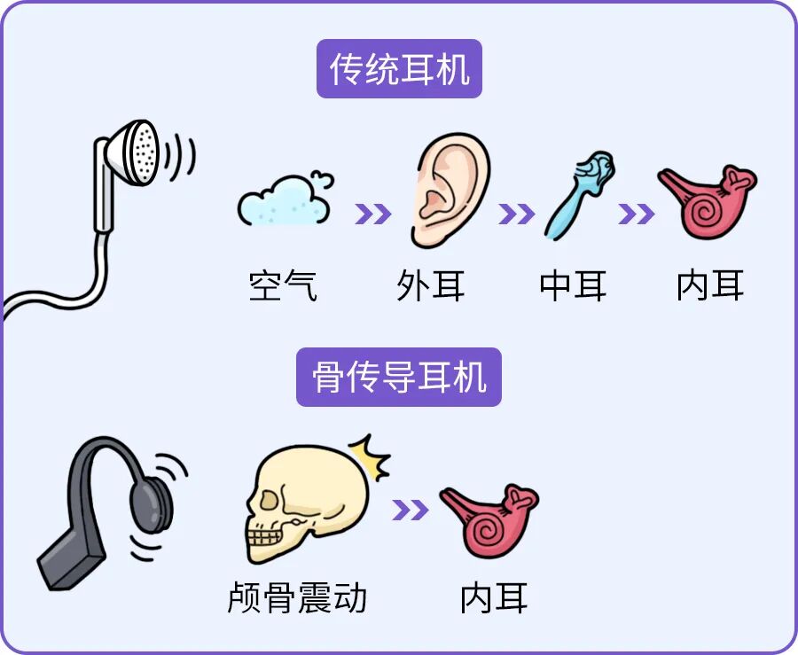 它不像传统耳机那样,需要经过空气将声音从外耳道传到鼓膜再传到耳蜗,而是直接通过颅骨振动来传输到耳蜗。