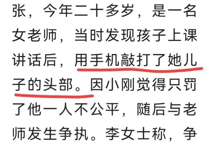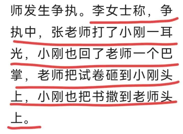 从这个事件的前半部分我们可以看出,这个时候的师生冲突,还是比较缓和的。虽然张老师用手机敲打了小刚,引起来小刚的反抗。但是我们注意到,小刚反抗的理由,并不是张老师用手机敲疼他了,而是因为张老师偏心,没有把与他说话的学生一起处理。所以我们是不是可以认为,张老师用手机敲打小刚的时候,并没有使用多大的力,或许就是象征性的敲一下。![]()