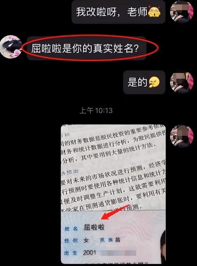 老师就让这位学生去把自己的姓名改了,因为学名是户口本上的,不能随便地用,随即这个学生拿出了自己的身份证,发给了老师,学生说老师你看,老师这下尴尬了,不知道如何做,因为确实有的学生名字比较独特。