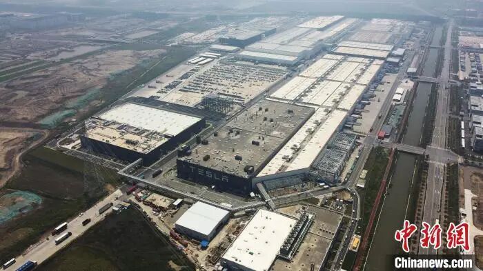 航拍位于上海自贸区临港新片区的特斯拉上海超级工厂。殷立勤 摄