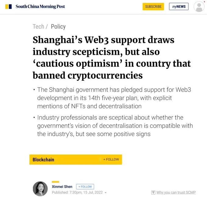 - 上海已提议支持领先企业探索NFT交易平台,以促进资产数字化。
