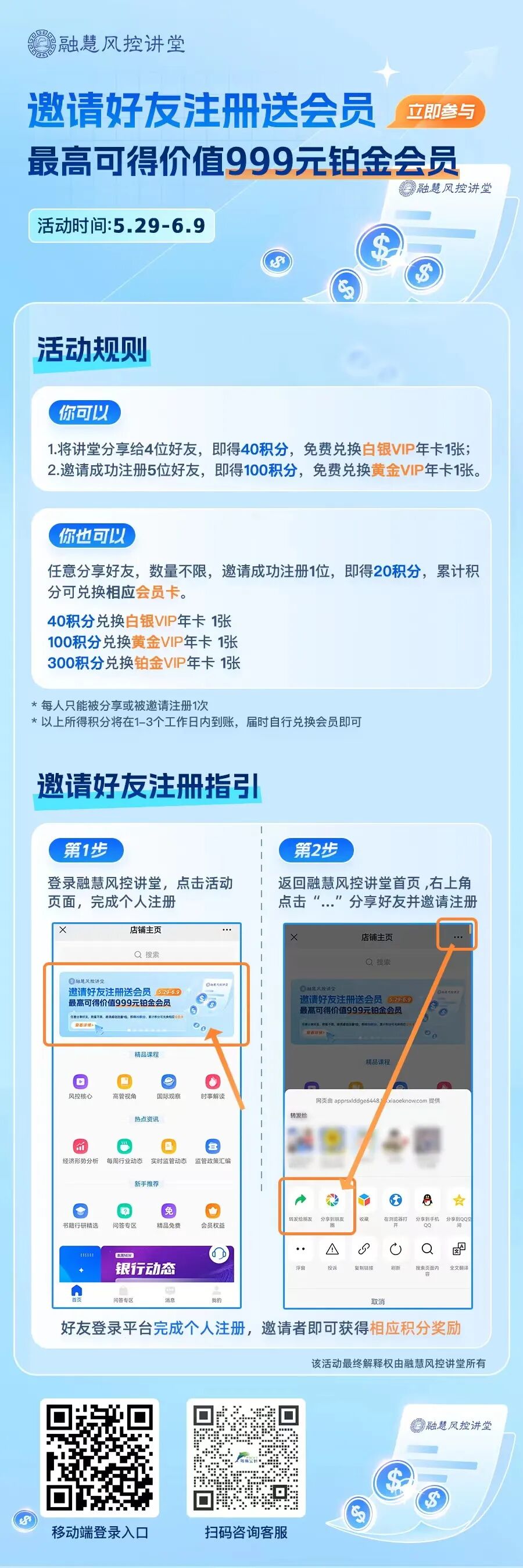 为答谢新老用户一直以来的支持与信任,融慧风控讲堂特别发起“邀请好友注册送会员”活动。